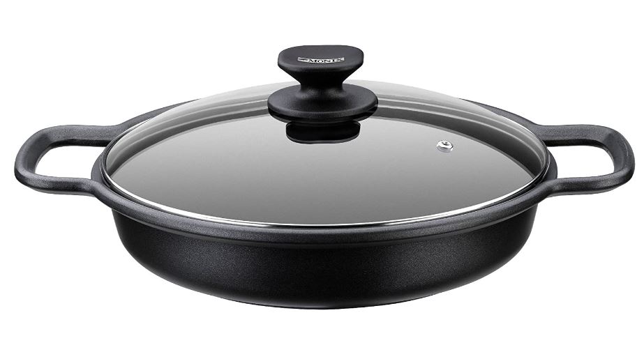 Aluminio fundido, capacidad 3.1 litros – Antiadherente Teflon – Fundición de aluminio que asegura eficiencia en el reparto del calor – Su tapa es de vidrio templado y resistente a los golpes – Es apta para horno (hasta 220ºC) y para todo tipo de cocinas, incluido inducción.