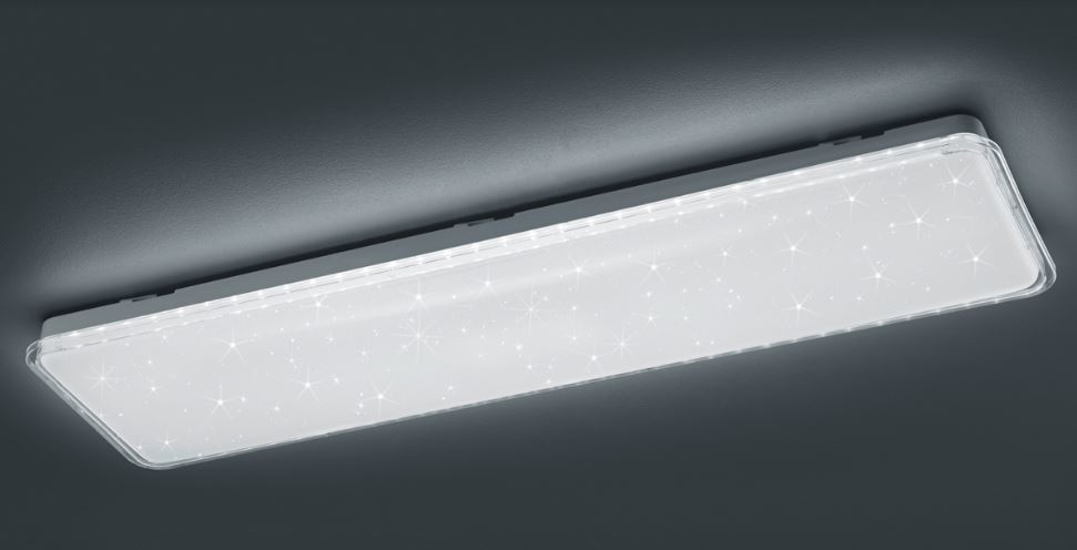 Plafón LED moderno, funcional y de diseño extraplano – Permite regulación en intensidad y color de luz de un tono cálido a uno frio – Difusor de policarbonato de alta calidad con efecto estrellado.