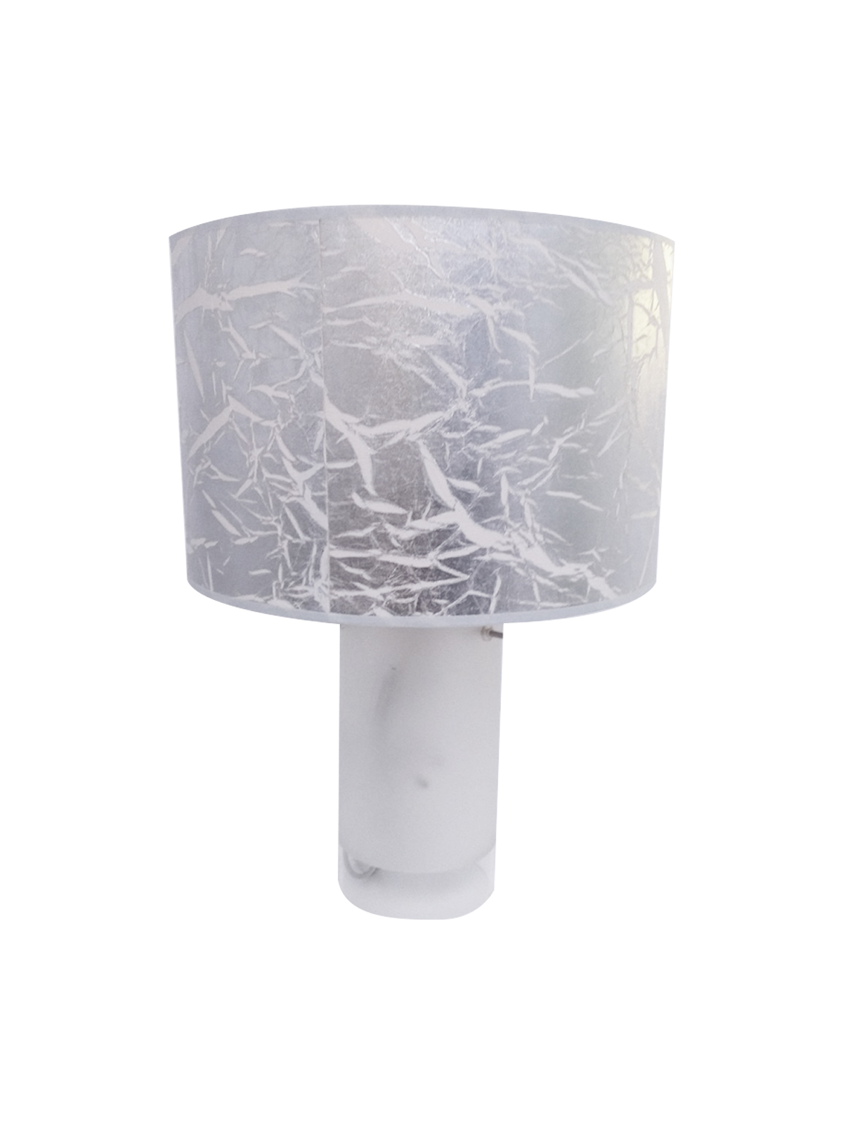 Sobremesa – En metal cromo brillo – Tela persia plata – Ideal para mesitas de noche y mesitas de salón/comedor – Con protección IP20.